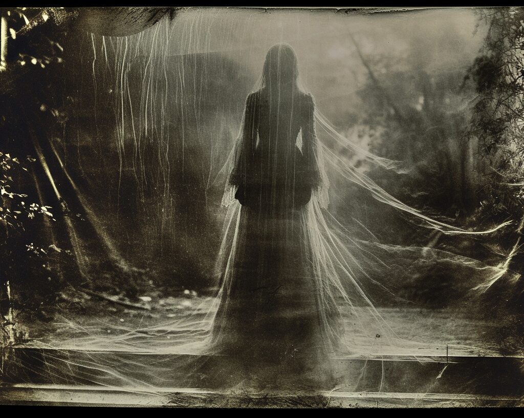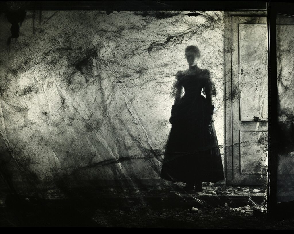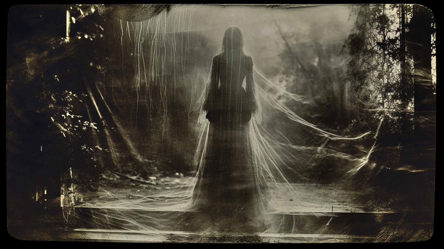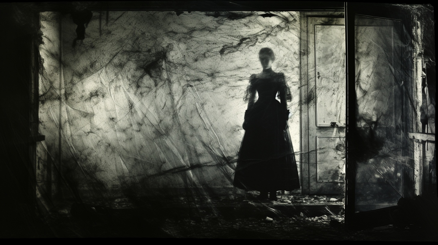 A Victorian widow's ghost appears within some sort of shadow dimension